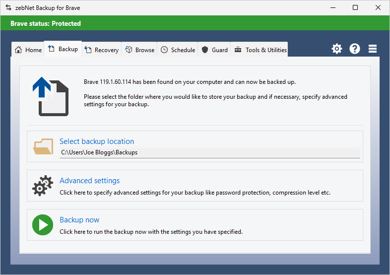 Have a look at the screenshots to get a first impression of what working with zebNet Backup for Chrome looks like. Each image is only a thumbnail and you can click on an image to enlarge it.