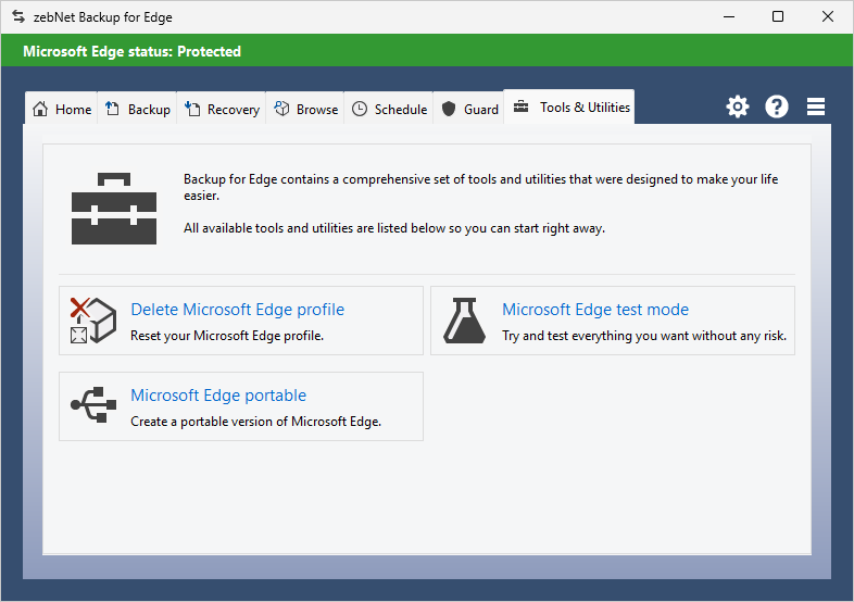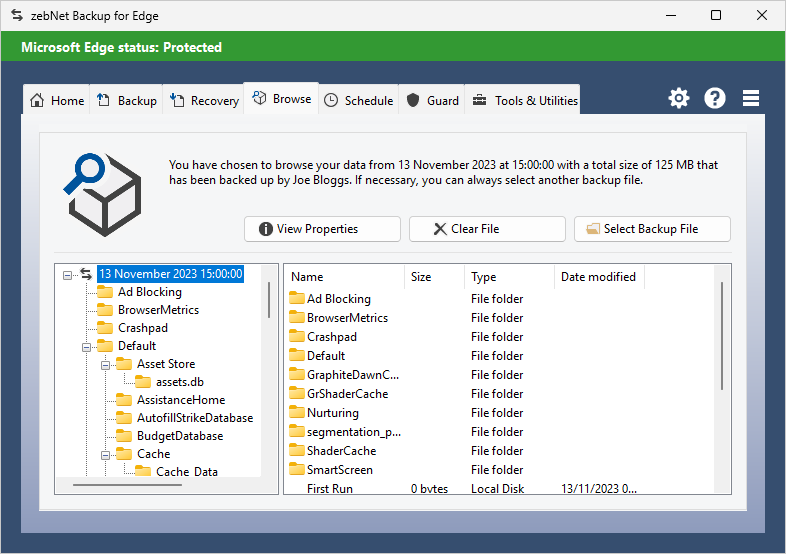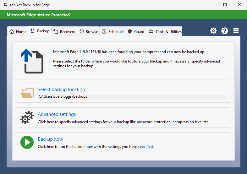 Have a look at the screenshots to get a first impression of what working with zebNet Backup for Edge looks like. Each image is only a thumbnail and you can click on an image to enlarge it.