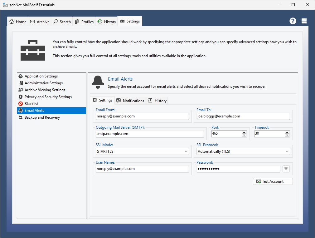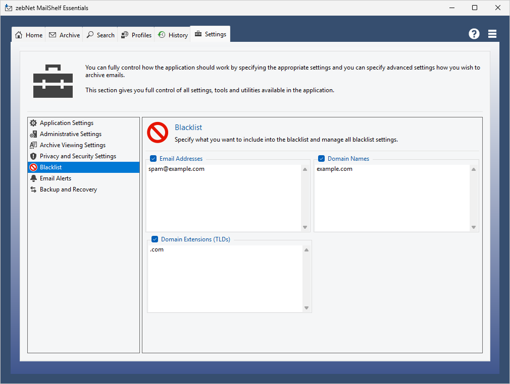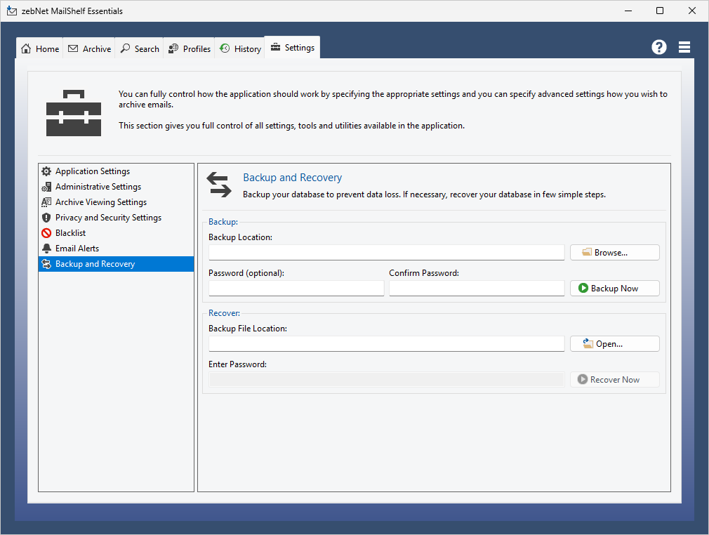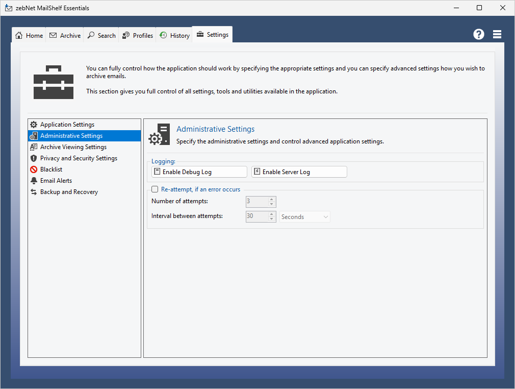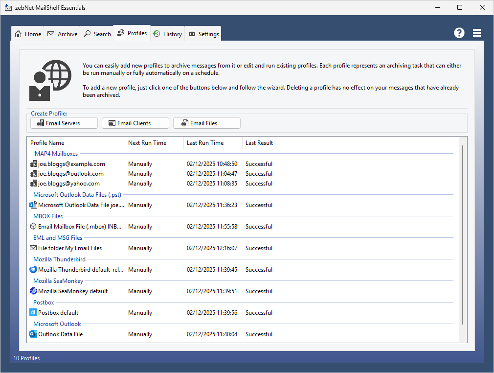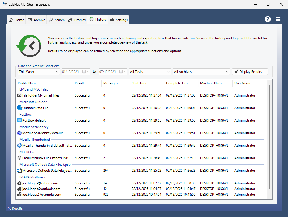 Have a look at the screenshots to get a first impression of what working with zebNet MailShelf Essentials looks like. Each image is only a thumbnail and you can click on an image to enlarge it.