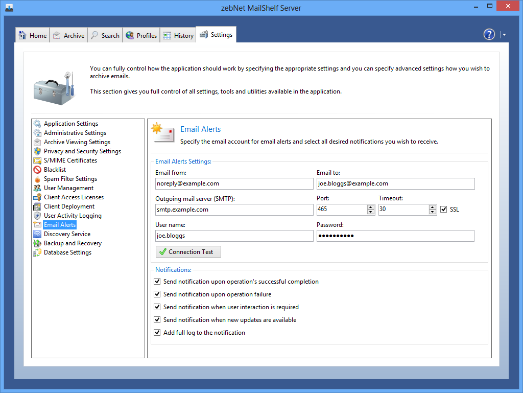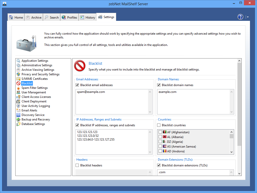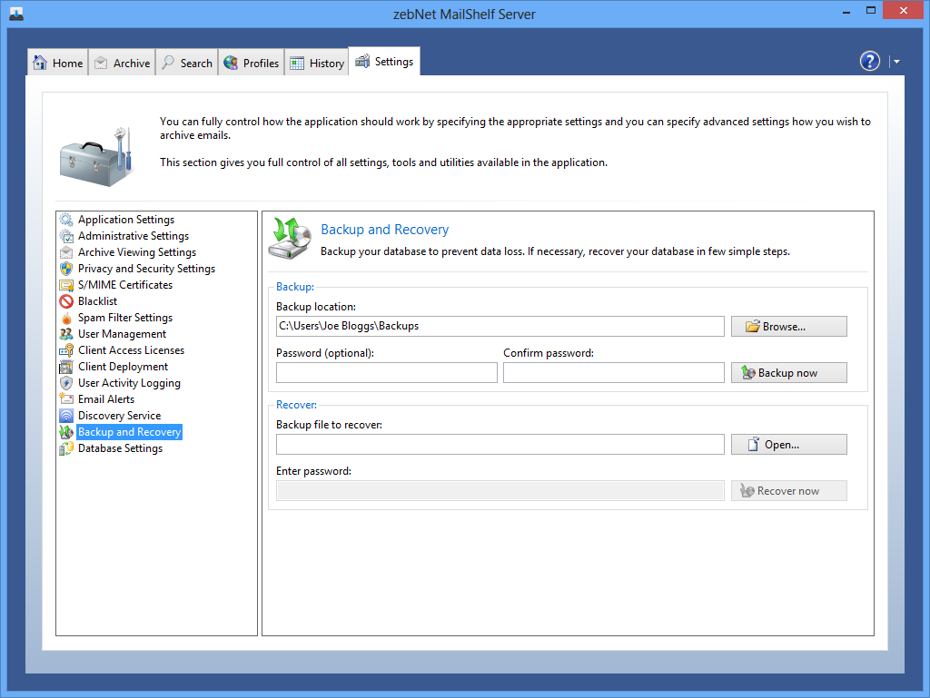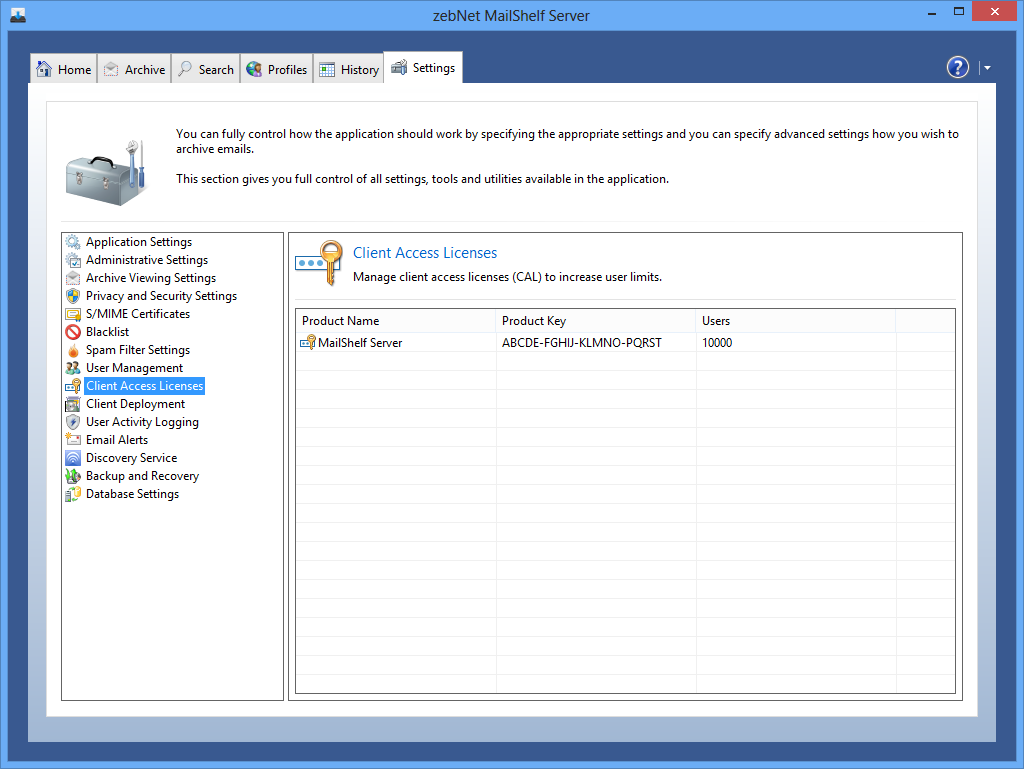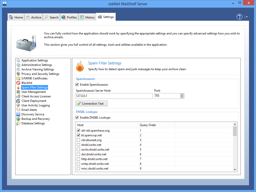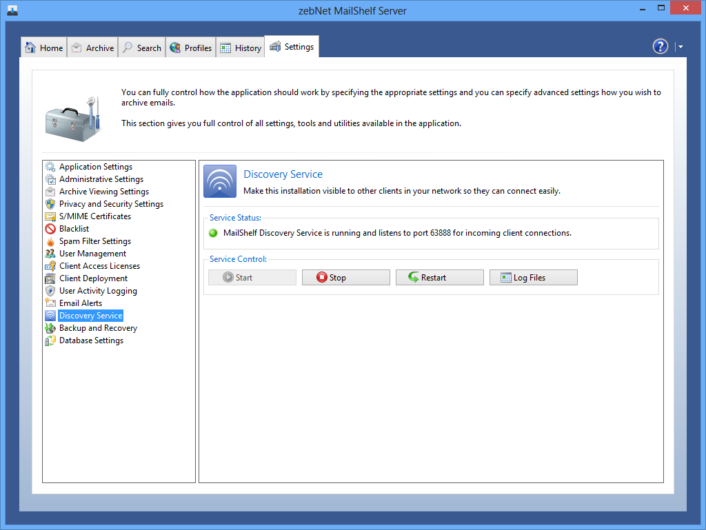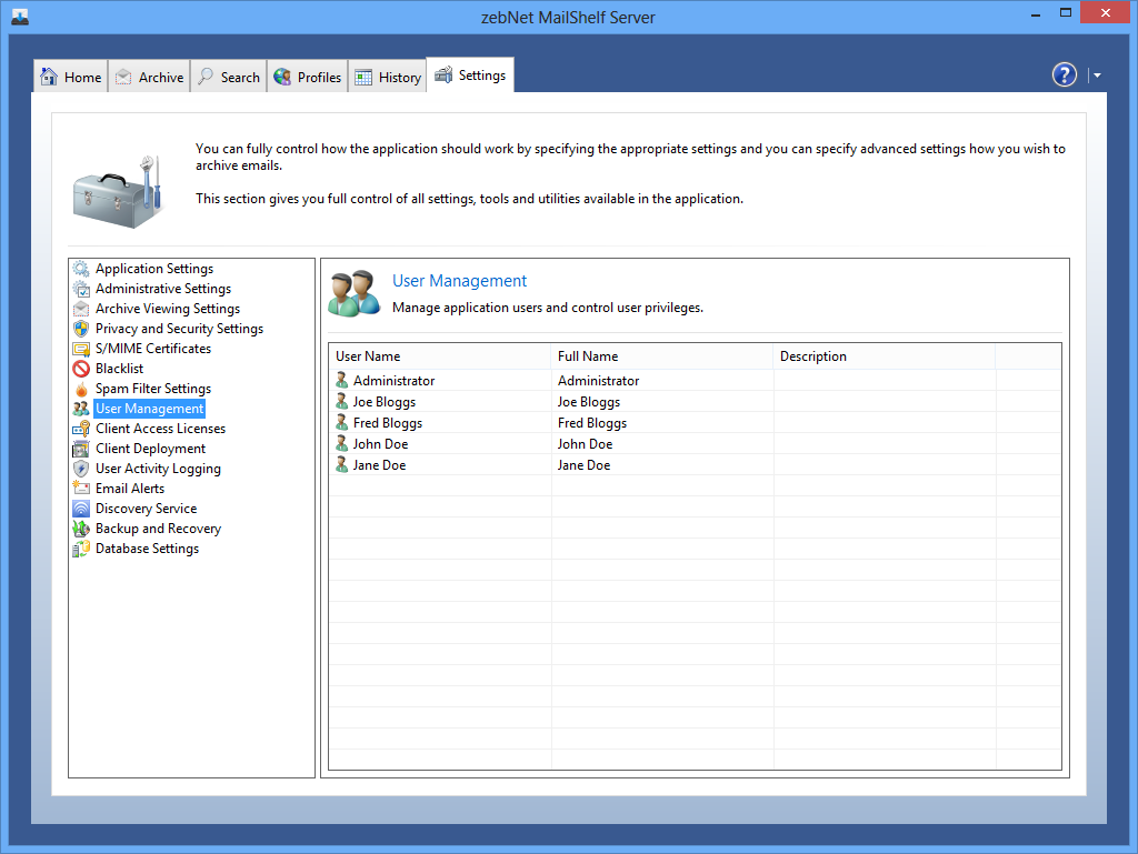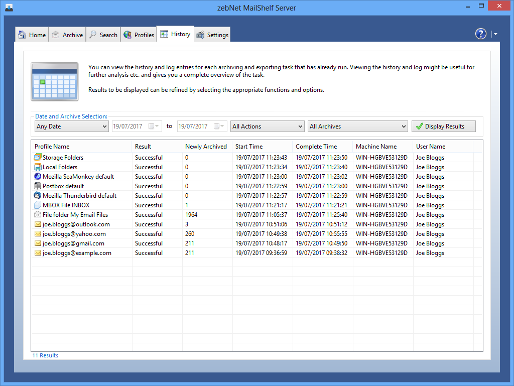 Have a look at the screenshots to get a first impression of what working with zebNet MailShelf Server looks like. Each image is only a thumbnail and you can click on an image to enlarge it.