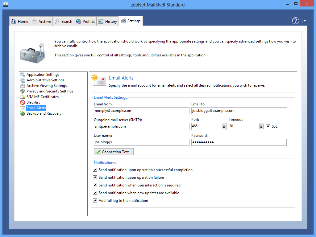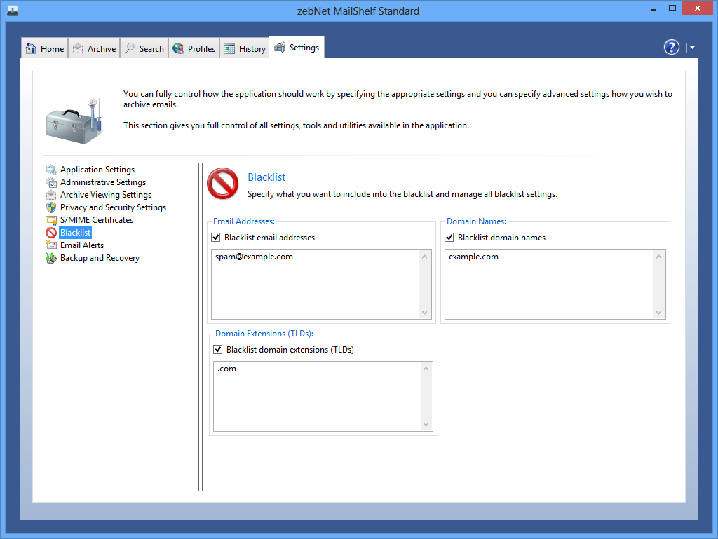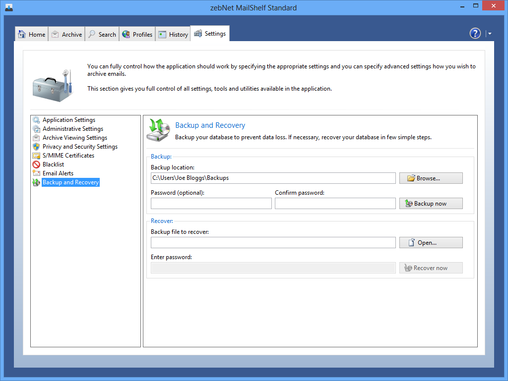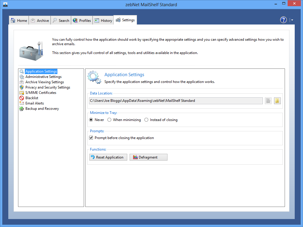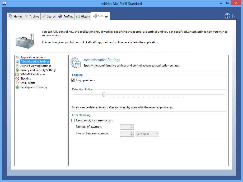 Have a look at the screenshots to get a first impression of what working with zebNet MailShelf Standard looks like. Each image is only a thumbnail and you can click on an image to enlarge it.