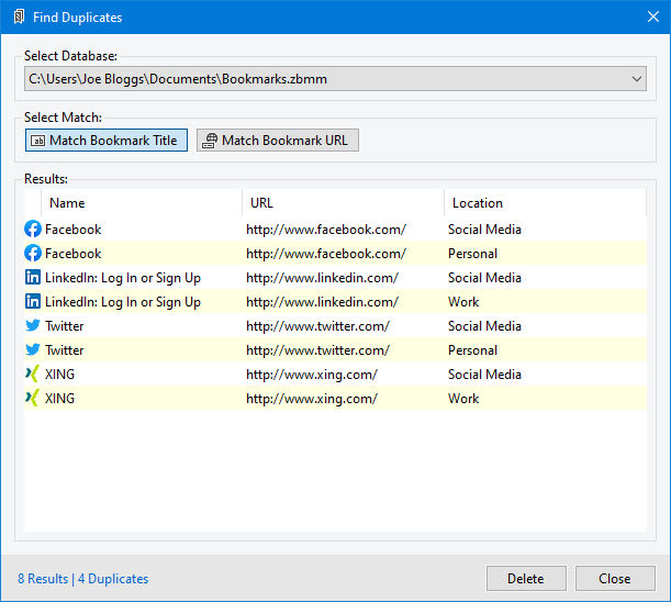 Have a look at the screenshots to get a first impression of what working with zebNet Bookmark Manager looks like. Each image is only a thumbnail and you can click on an image to enlarge it.