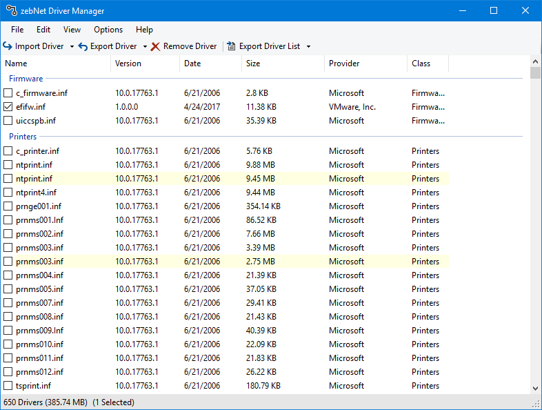 Have a look at the screenshots to get a first impression of what working with zebNet Driver Manager looks like. Each image is only a thumbnail and you can click on an image to enlarge it.