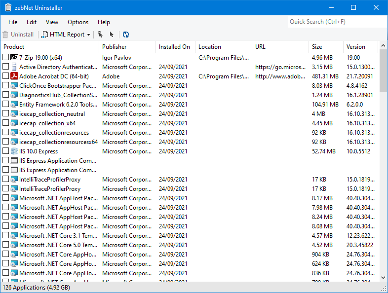 Have a look at the screenshots to get a first impression of what working with zebNet Uninstaller looks like. Each image is only a thumbnail and you can click on an image to enlarge it.